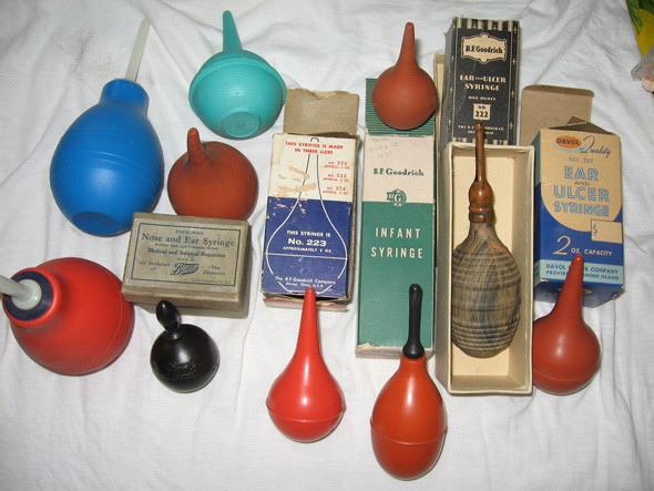 各式各样古老的球型肛门注射器,可用于小量灌肠