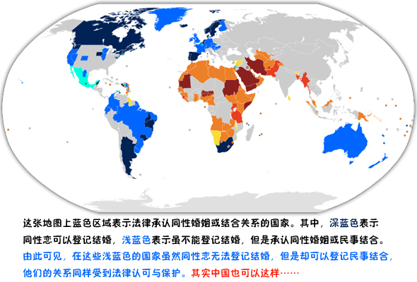 但是,“承认民事结合"就不同瞭。承认民事结合关系,最多只是在现行的婚姻法(或者其他一个什么法上)加一小段的备注:“承认民事结合的公民结合关系,保障选择民事结合公民的基本人权与合法权益”——就这么简单。
