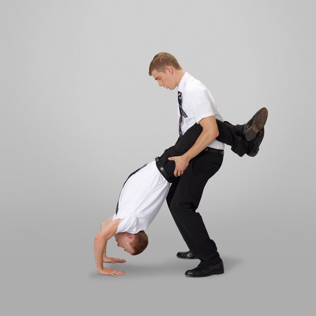 今天要给大家推荐的是一组恶搞的摄影作品《摩门传教士体位16式》。说起摩门教,实际上它正确的名称是耶稣基督后期圣徒教会(The Church of Jesus Christ of Latter-Day Saints),是美国的第四大教会并拥有大批信徒。作为基督教的分支之一,摩门教一向反对同性恋**。** 例如,今年美国大选与奥巴马争夺总统宝座的的罗姆尼(Willard Mitt Romney),他就是一名摩门教徒,所以他的政治风格更加保守,并坚决反对美国同性婚姻合法化。{#more-7026}