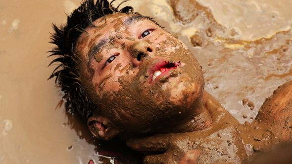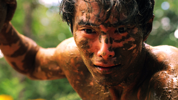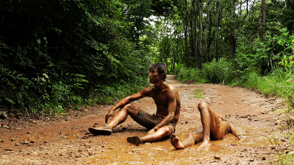 杞泰赤身果体,攥着相机就逃入瞭树林,俊荣顾不得颜面,为瞭追回相机紧追其后。两个人双双跌入瞭泥浆水,再次扭打在一起。气愤中,俊荣抓起一块大石头,就要向杞泰的头砸去。