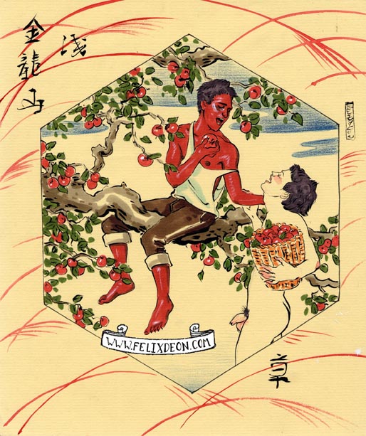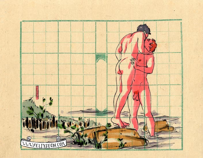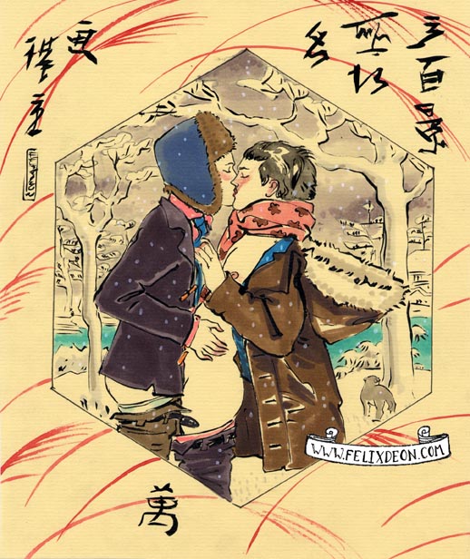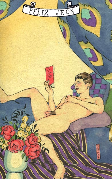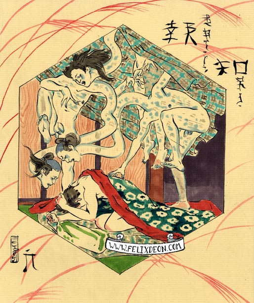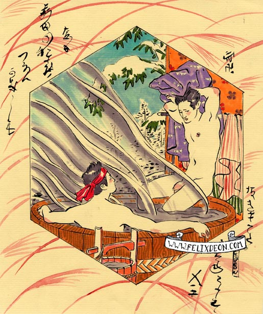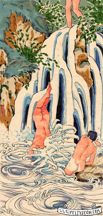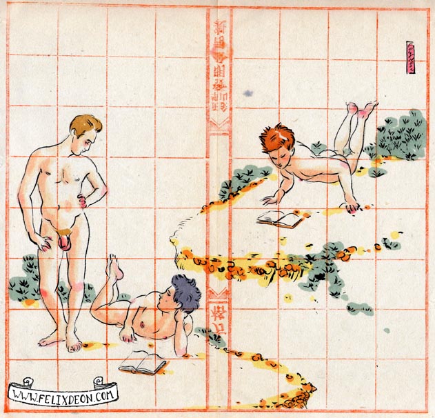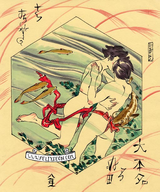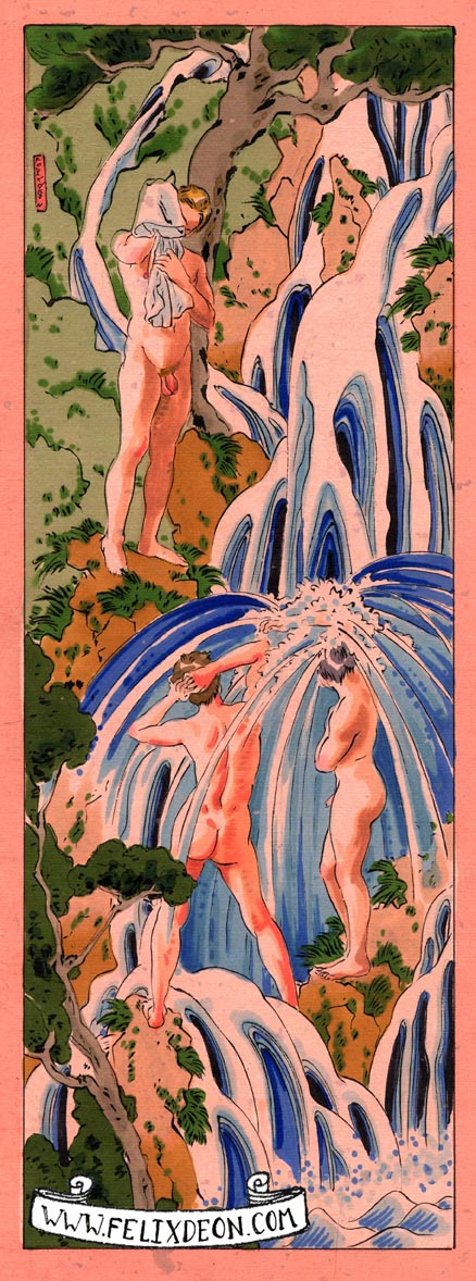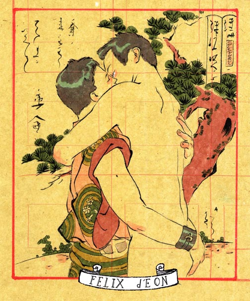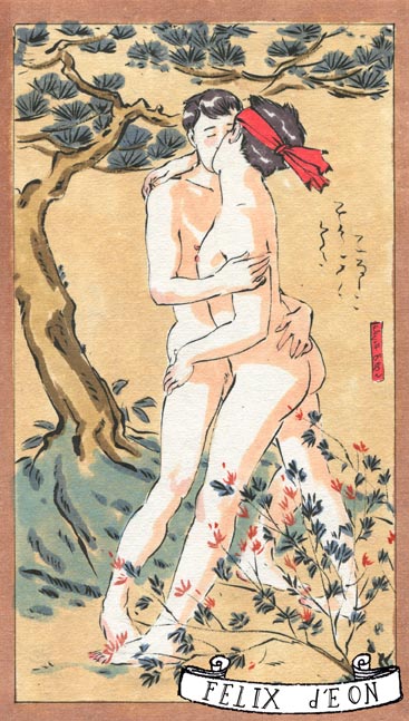菲利克斯的绘画风格多变而充满异域风味。他尤其擅长模仿日本浮世绘中的色彩与线条,给人耳目一新的特殊感官享受。以下,就请欣赏菲利克斯·德宙的浮世绘风格、同志题材的绘画作品。