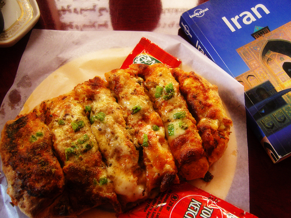 紧接着,他开始大声地向我嘟囔着大段大段的波斯语,带着浓重的伊朗南部方言。很可惜,我只听懂瞭"你好”、“很好”、“好吃"之类的个别字眼。为瞭不让他灰心丧气,我就假装着随声附和,满口"是”、“是” 地与他一起大声说笑。