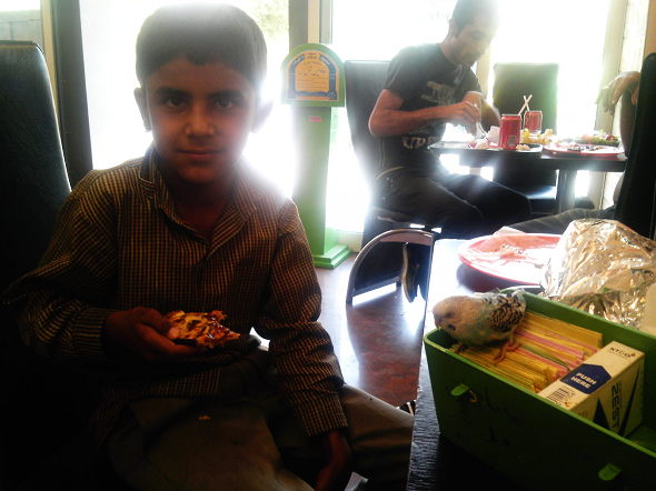过瞭一会儿,或许他觉得在店里实在打扰别的客人,于是便抱着鹦鹉盒子悄然离开瞭披萨店。离开之前,他起身向我施礼,羞涩地小声说瞭声” 谢谢你,再见,愿神保佑你……",于是伴随着门口铜铃的清脆响声与一股扑面而来的热浪,阳光刺得我睁不开眼,而孩子却最终消失在设拉子城无人的街头……