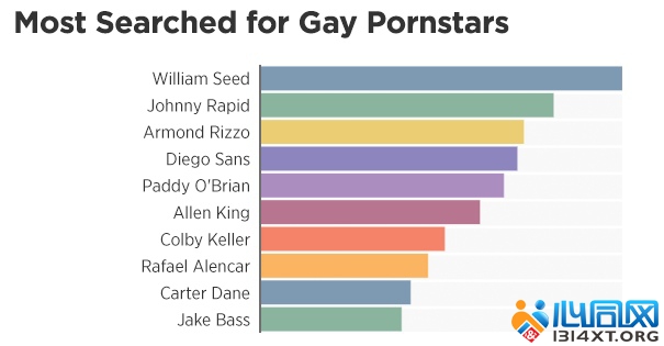 约翰尼·莱培(Johnny Rapid)和阿尔蒙·里兹佐(Armond Rizzo)则紧追在后。有趣的是,备受瞩目的西班牙新人胡尔蒂·厄尔—尼诺·波亚(Jordi El Nino Polla)虽然只出演异性恋视频,却仍脱颖而出,成为Pornhub上男同志搜索最多次的演员。